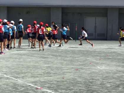 高学年リレーの練習も進んでいます。バトンパスが大事ですね。
