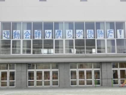 今年のスローガンは「運動会 輝け僕らが優勝だ!」です。