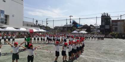 チェッコリ♪リズムに乗って 1年生、踊りも入った玉入れです。