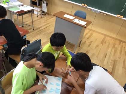 「日本語」の時間です。日本の伝統や文化をたくさんふせんに書き出し、仲間分けをしていきます。