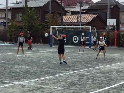体育の時間です。タグラグビーに挑戦します。
