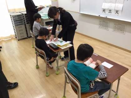 くるみ学級で研究授業が行われています。「漢字っておもしろい」というテーマで、漢字の成り立ちを調べていきます。