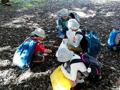 どんぐりや、赤い実などを見つけました。思わずどんぐりコロコロを口ずさむ子どもたちもいます。