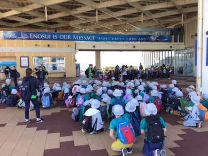 水族館に到着しました。係の方の説明を聞いたあと、グループごとにオリエンテーリングになります。