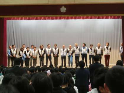 今朝はみんなの安全を見守ってくださる「町ぐるみパトロール」の皆さんが来てくださいました。