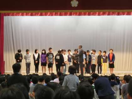 また、北沢まつりで行われた「子ども綱引き大会」で、優勝を始めいろいろな賞をいただいた児童の表彰がありました。