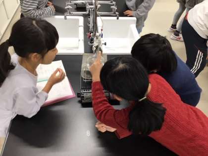 理科の時間です。水のあたたまり方について実験しています。