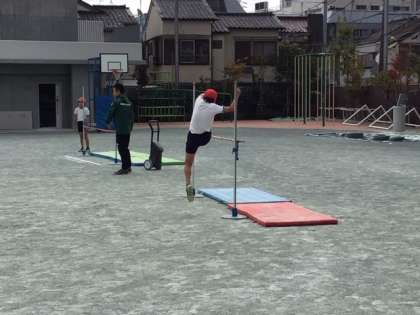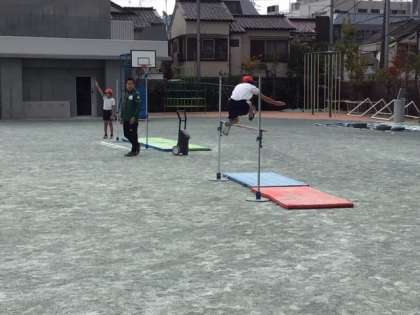 走り高跳びに挑戦しています。