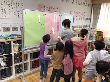 グループで情報交換をしたあとは、クラスみんなで言葉を集めています。
