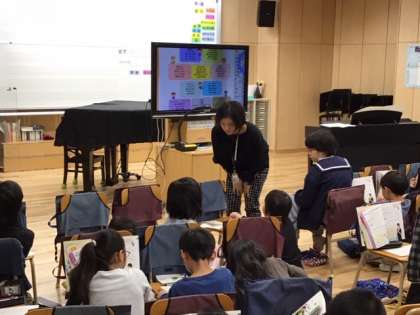 音楽の時間です。曲想を感じとって、自分の言葉で表現しています。