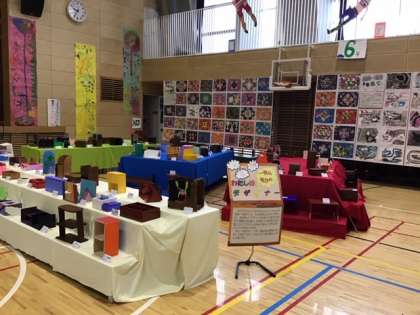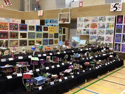メイン会場は体育館になります。多くの作品を展示しますので、ゆっくりとご鑑賞ください。