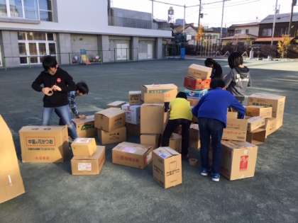4年生の公開制作がスタートしました。ダンボールで迷路を作ります。