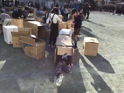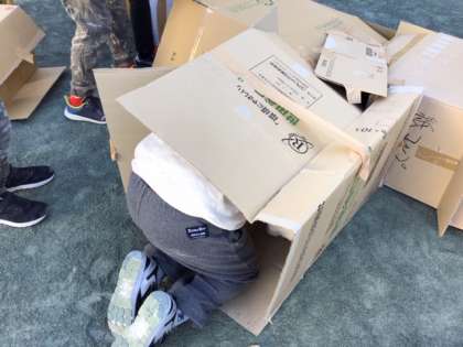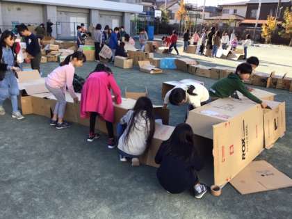 4年生のダンボール迷路、これは楽しいですね。