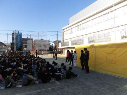 12月4日 避難訓練 公開日 2019/12/05 更新日 2019/12/05 できごと 今朝は体育館の集会中に火災が発生という設定で、体育館から避難する訓練を行いました。 避難後、3・5年生は煙中避難訓練も体験しました。 いいね(0)