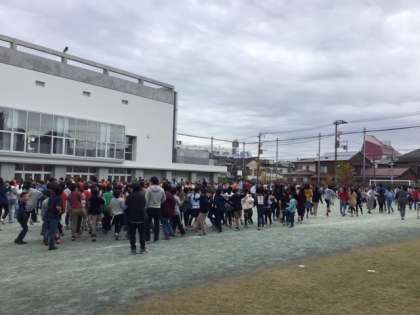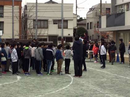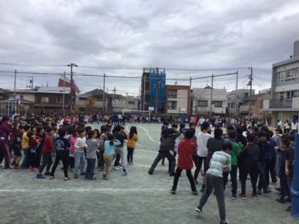 今朝は、全校児童が参加して「歩っこゲーム」をしています。体があたたかくなるゲームです。