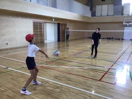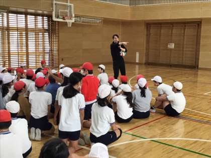 講演会のあと、6年生が大山選手から直接指導をいただきました。