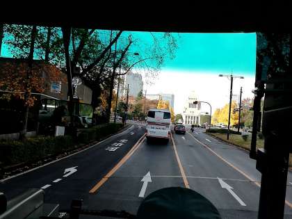 6年生は、社会科見学で国会議事堂と江戸東京博物館へ行きます。財務省、高等裁判所、外務省などの前を通って国会議事堂に向かっています。