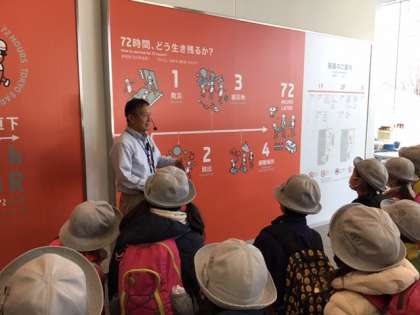 大地震に遭遇した後の72時間をどう切り抜けるか。一人一台タブレットを持ちながら、体験ツアーに挑戦します。