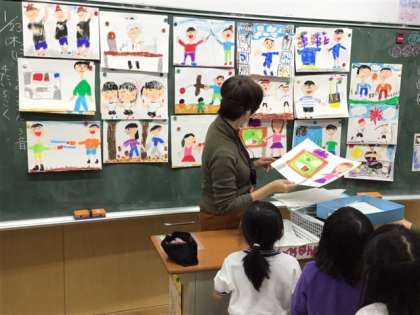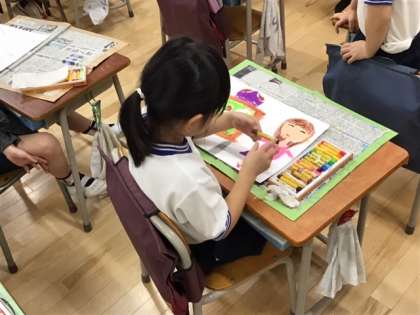 1年間を振り返って、下北沢小学校での思い出を絵に描いています。新しい入学する1年生の教室に飾る予定です。