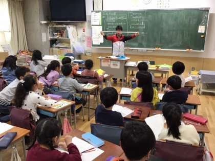 算数の時間では、長さの学習をしています。大きなものをどうやって測るかを考えています。