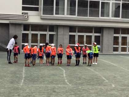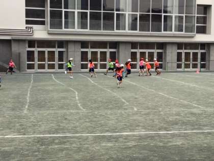 体育の時間です。とても寒い日ですが、元気に走り回っています。