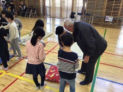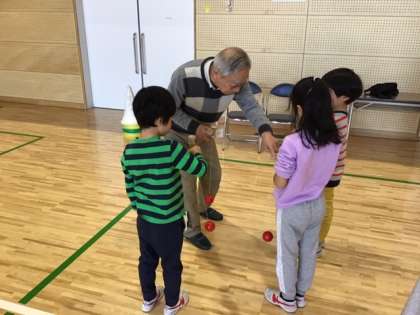 地域の方を講師にお招きして、昔あそびを教えていただきました。メンコやけん玉、羽子板など、たくさん体験することができました。