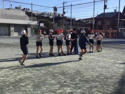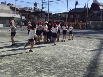 体育の時間です。持久走では、校庭10周に挑戦中です。