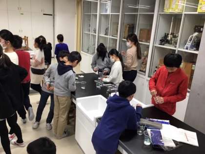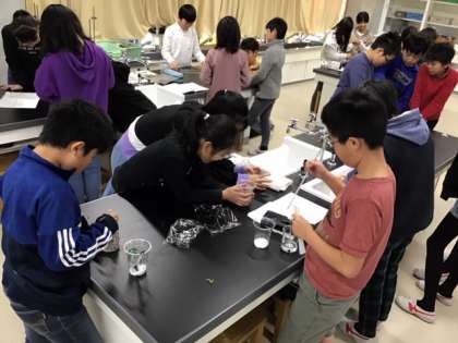 理科の時間です。水溶液の性質について実験しています。