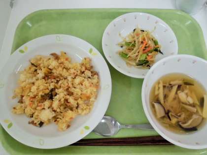 献立 キムチチャーハン、塩ナムル、春雨スープ、牛乳