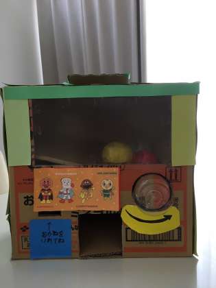 工夫したところは、ガチャガチャが転がって落ちてくるように、すべりだいみたいなかたちに作ったところです。