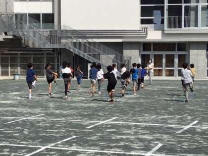 人との距離を保ちながら、体を動かす活動も始まりました。