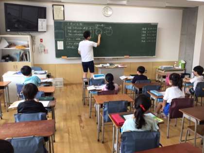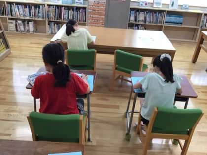 算数では、時計を使った学習をしています。図書室では静かに読書をしています。