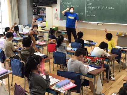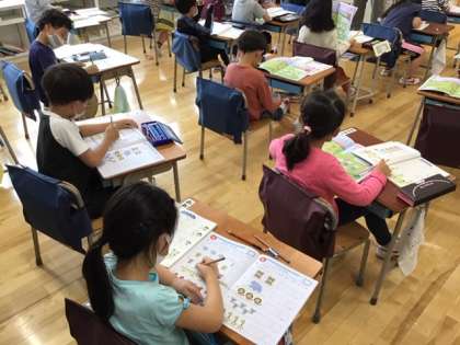 算数の時間です。ことばあそび(5文字の言葉を集めようなど)をしながら、数について学んでいます。