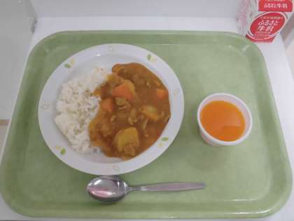 献立 チキンカレーライス、キャロットゼリー、牛乳