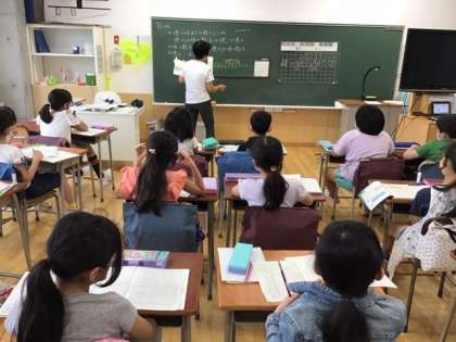 算数の時間です。少人数で進めていきます。今日は、「千億よりも大きな数」について学習します。