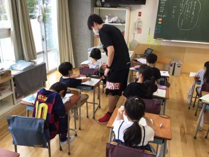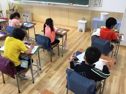 国語の時間です。「スイミー」を初めて読んだ感想を書いています。