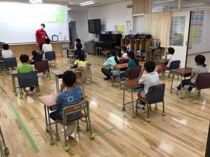 今日は金曜日。集会時程です。みんなそろって朝の会をしています。