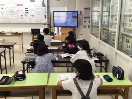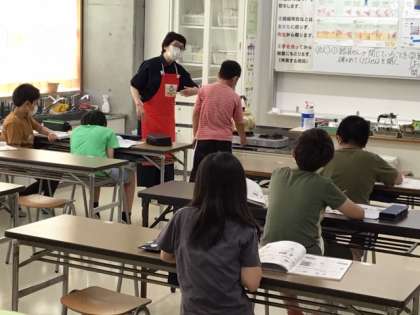 家庭科の時間です。ガスコンロの使い方について学習しています。