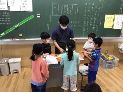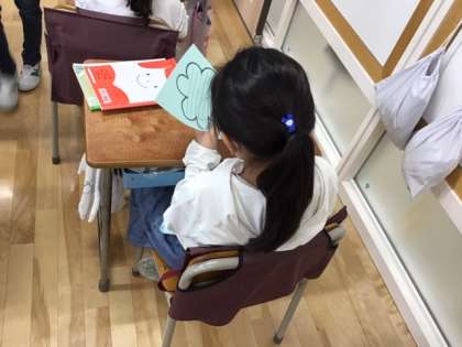 学級活動の時間です。1年生に向けてお手紙を書いています。