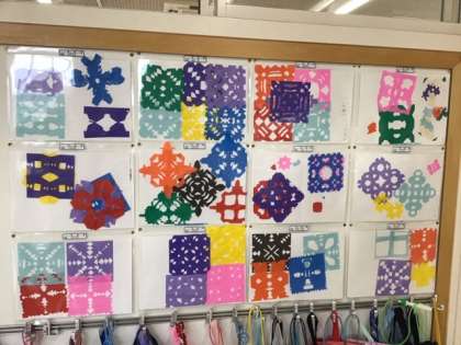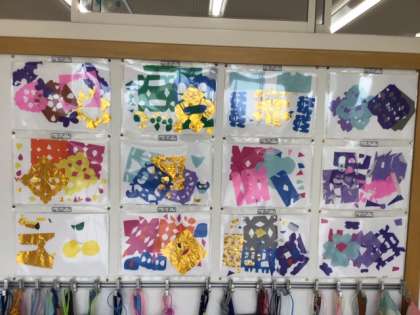 紙とハサミで作った作品を掲示しました。