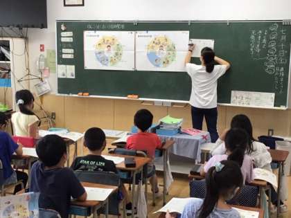 保健の時間です。「健康に良い1日の過ごし方」について学習しています。