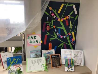 下北沢小学校の図書室では、司書の先生が季節に合った本をたくさん紹介してくれます。
