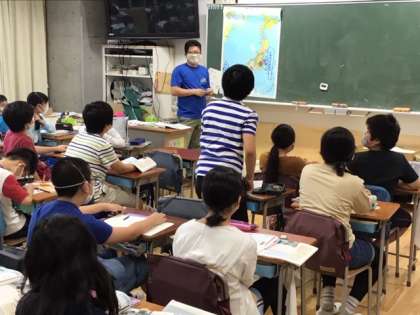 社会科の歴史の時間です。大和朝廷について、日本地図を見ながら意見を交流しています。