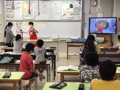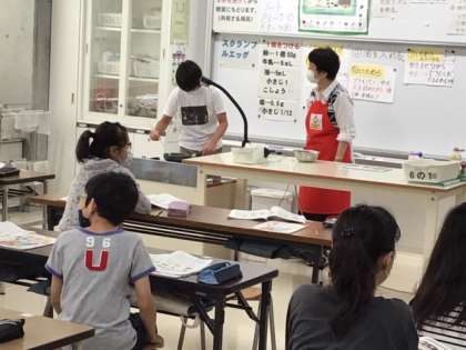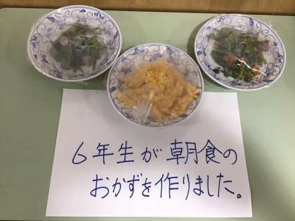 家庭科の時間です。朝食のおかず作りに挑戦しています。代表者が実演する形にしています。