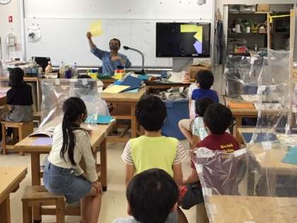 図工の時間です。「作って 使って 楽しんで」紙工作に挑戦します。