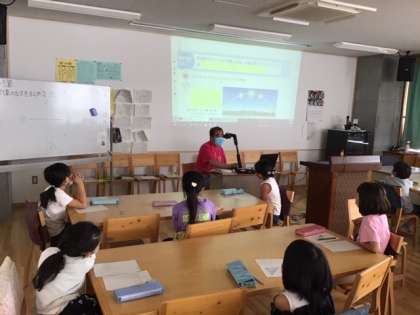 理科の時間です。「太陽の動き」について、映像を見ながら確認しています。