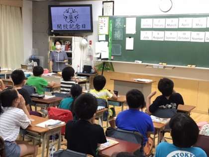 外国語の時間です。開校記念日は、11月26日です。11月26日を英語で言うと