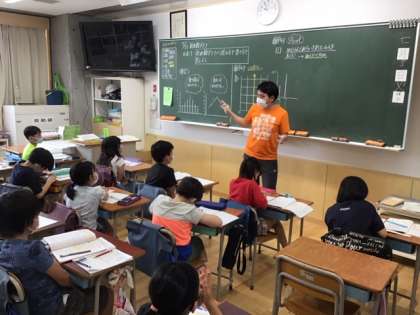 算数の時間です。折れ線グラフの読み方と書き方について学習しています。