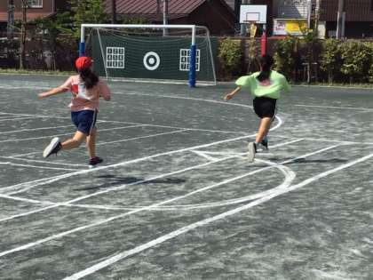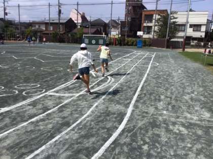 運動会へ向けて、短距離走のタイム計測です。なかなかダイナミックな走りです。