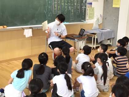 国語の時間です。先生の読み聞かせに聴き入っています。お話の続きが気になりますね。